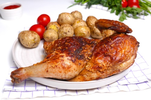 Для начала надо запечь в духовке паприку. Говорят, делают и просто с обжаренной, но лично я никогда не пробовала. Итак, запекаем около 45 минут при температуре 200 градусов до темных прогалин со всех сторон. В процессе запекания перцы переворачивать. Я всегда включаю гриль. Далее дать перцам 5 минут передохнуть, сложить в полиэтиленовый пакет, завязать и дать немного остыть.