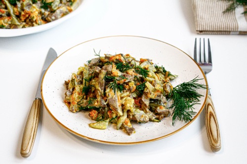 Салат, который можно приготовить в качестве легкого, полезного, но полноценного ужина - это салат с говядиной, овощами и пореем.