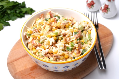 Свежесть и легкость пекинской капусты, нежность крабовых палочек, сладость кукурузы и приятный хруст огурцов - в этом салате вы все найдете.