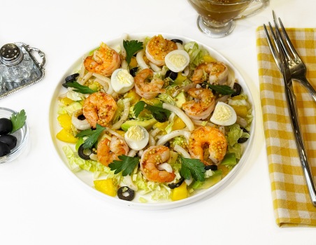 Греческий салат давно завоевал любовь многих, а с добавлением креветок, на мой взгляд, он еще вкуснее.