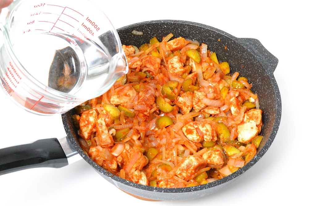 Томатную пасту можно заменить измельченными замороженными помидорами. Только взять нужно примерно 700-900 г, не меньше (для насыщенного вкуса). А воду не добавлять вообще, если жидкости получается достаточно.