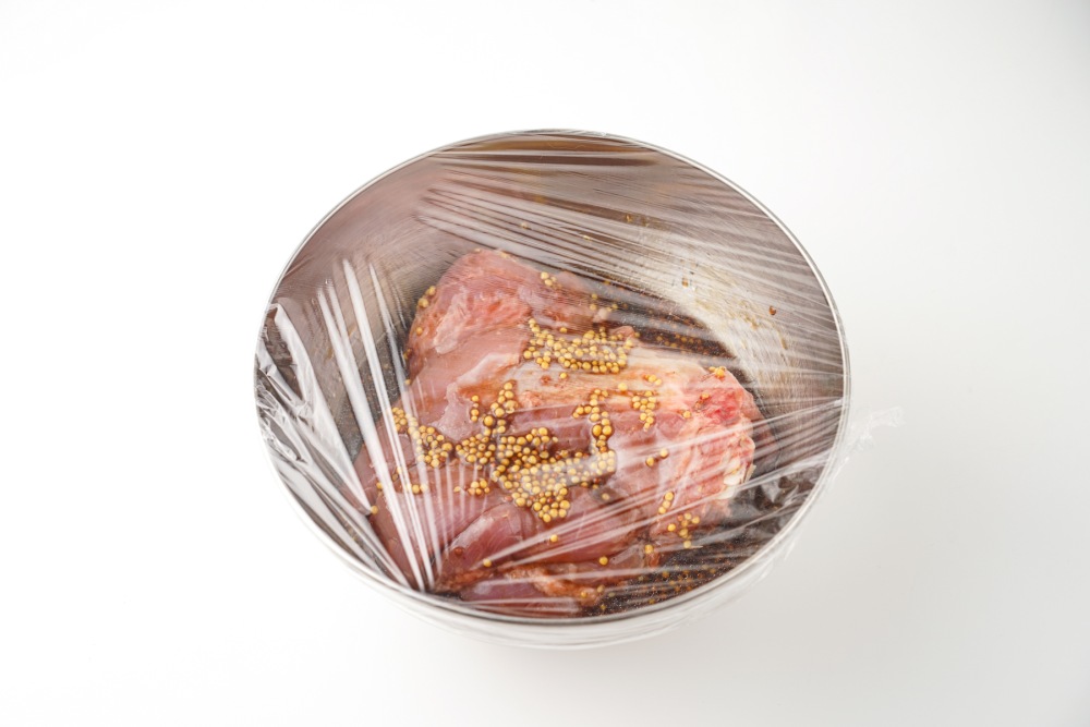 Накрыть миску пищевой пленкой. Поставить в холодильник минимум на 30 минут. Если есть возможность, оставить индейку на несколько часов или на ночь, так она станет ещё мягче, а вкус глубже.
