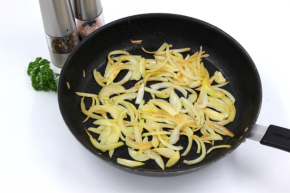 - Наверное одно из самых распространённых дополнений – это грибы. Возьмите шампиньоны, нарежьте их тонкими шайбами и обжарьте вместе с луком. Далее всё по рецепту.