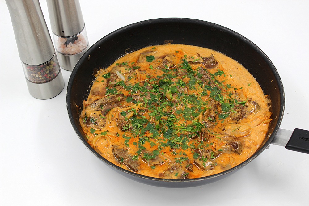 Как изменить или улучшить бефстроганов из печени со сметаной на сковороде