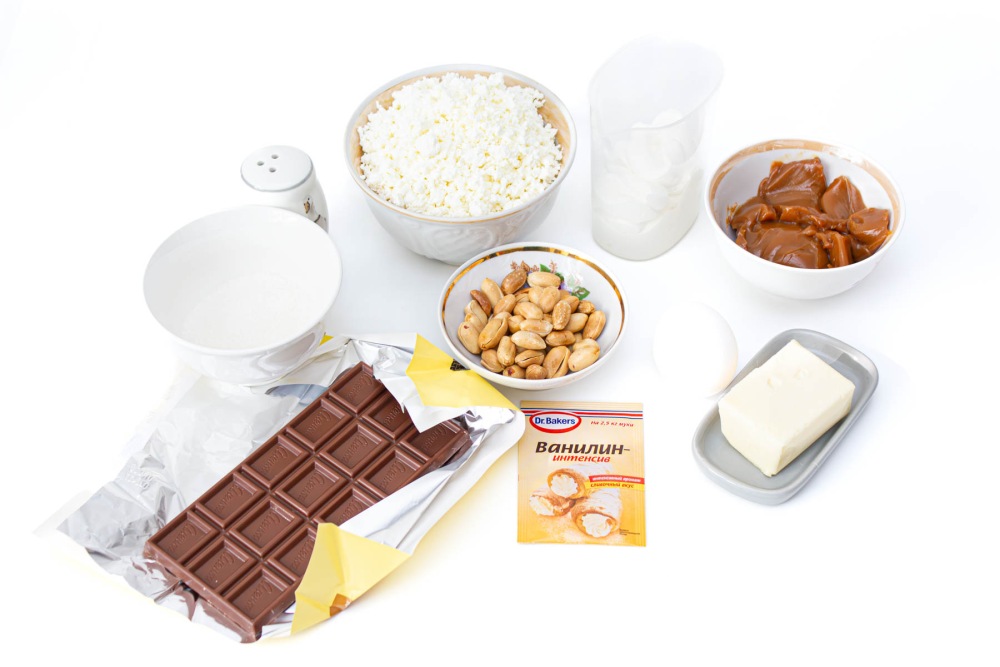 Основу составляет нежнейший творог, смягченный сливочным маслом, сметаной и сахаром. Добавленные ванилин и вареная сгущенка с арахисом превращает обычный десерт в нечто особенное. Главное достоинство этого блюда — сочетание мягкости и сладости, оттеняющее ореховой ноткой арахиса, которое мгновенно вызывает теплые воспоминания семейного праздника.