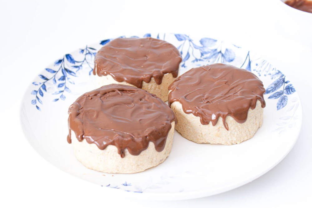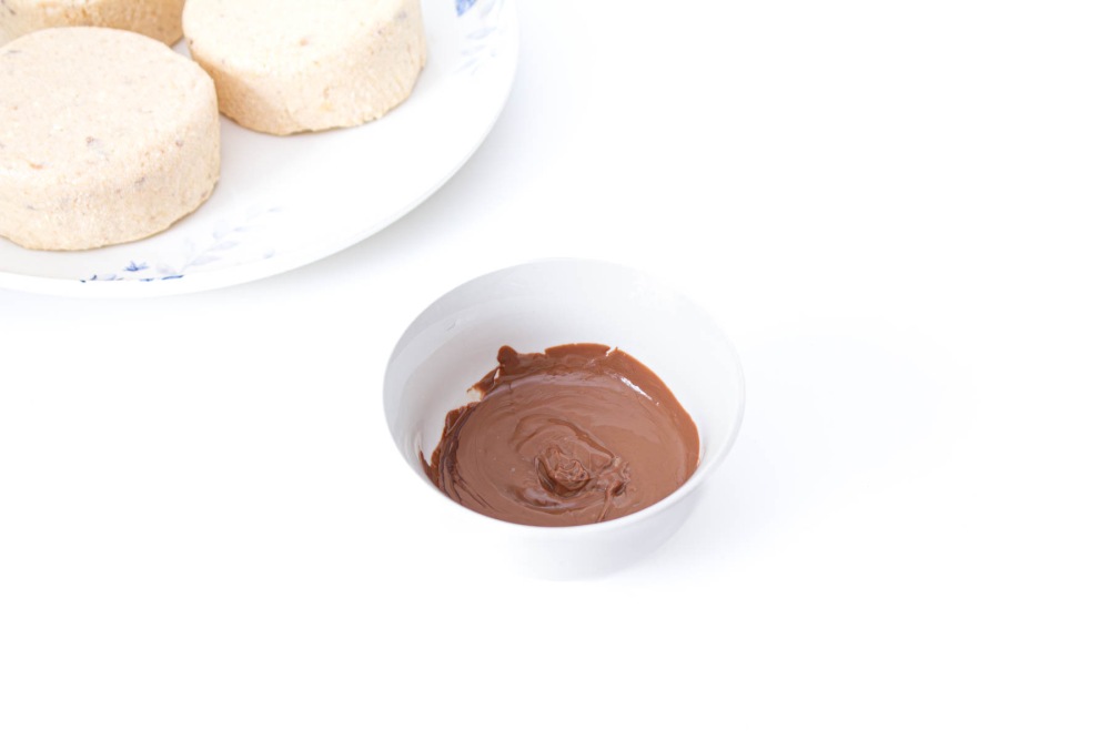 Плитку молочного шоколада разломить на кусочки и положить в чашу для прогрева. Растопить шоколад на водяной бане или же в микроволновке (каждые 30 секунд я доставала и помешивала глазурь, пока она не достигла нужной консистенции).