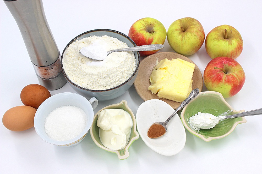 Подготовить ингредиенты для бездрожжевого яблочного пирога.