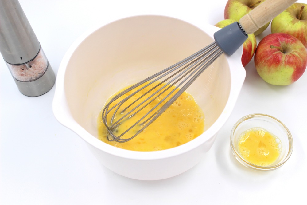 Взболтать 2 яйца. Отделить примерно столовую ложку на смазывание верха пирога.