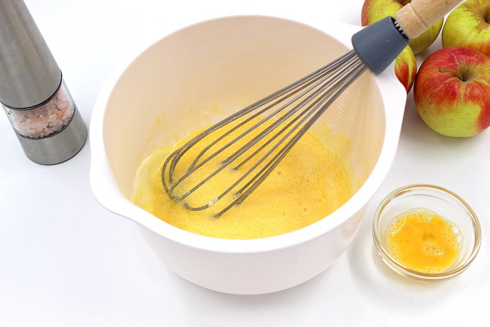 Взболтать 2 яйца. Отделить примерно столовую ложку для верха пирога.