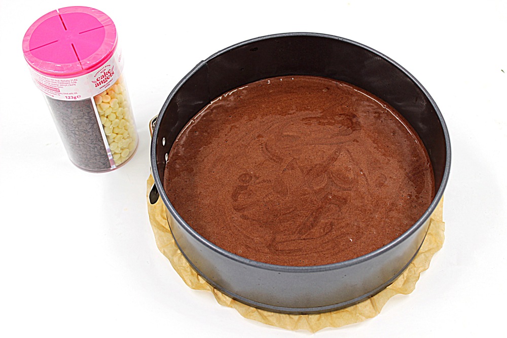 Бисквит в рецепте не совсем обычный. Он готовится с добавлением горячего молока и получается, в отличие от классического, более влажным, где-то даже немного похожим на брауни.