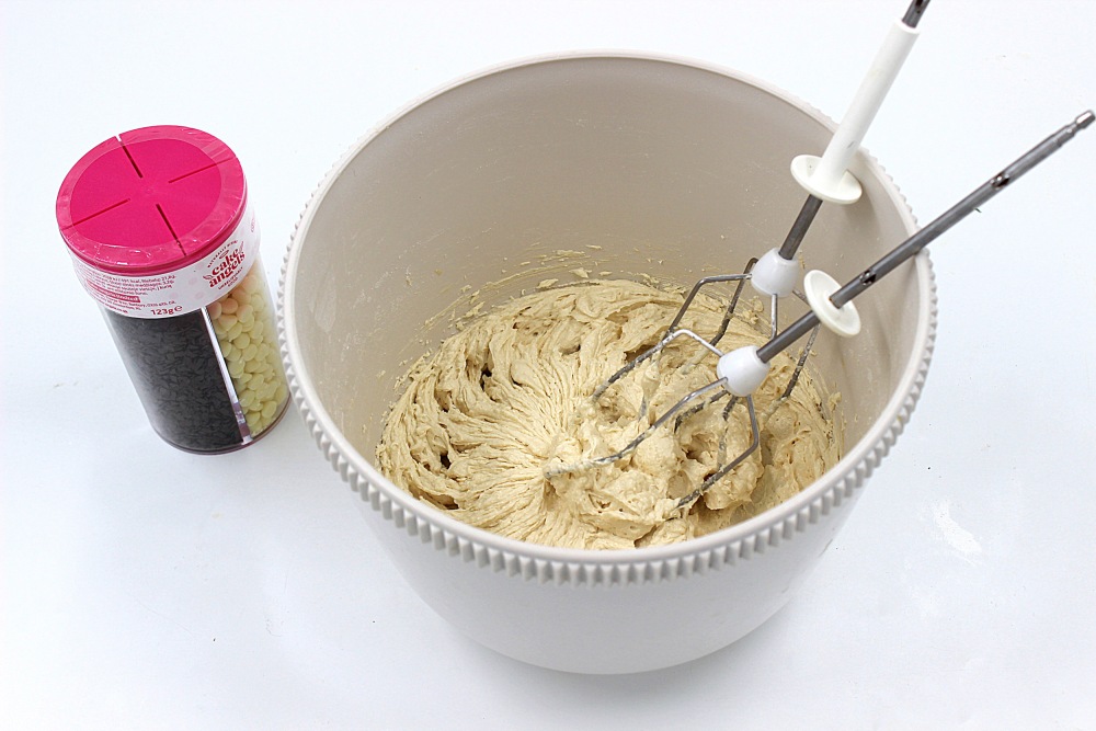 Масло должно посветлеть, стать воздушным. У меня оно скорее с бежевым оттенком. А всё потому, что пудра сделана из коричневого сахара. Взбивать около 5 минут.