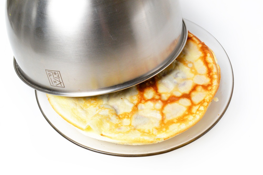 Готовые блины сложить стопкой на тарелку подходящего диаметра и накрыть глубокой миской, чтобы она полностью соприкасалась с тарелкой, не оставляя щелей. Так, блины пропарятся и станут эластичнее, мягче (особенно если края получаются суховатыми).