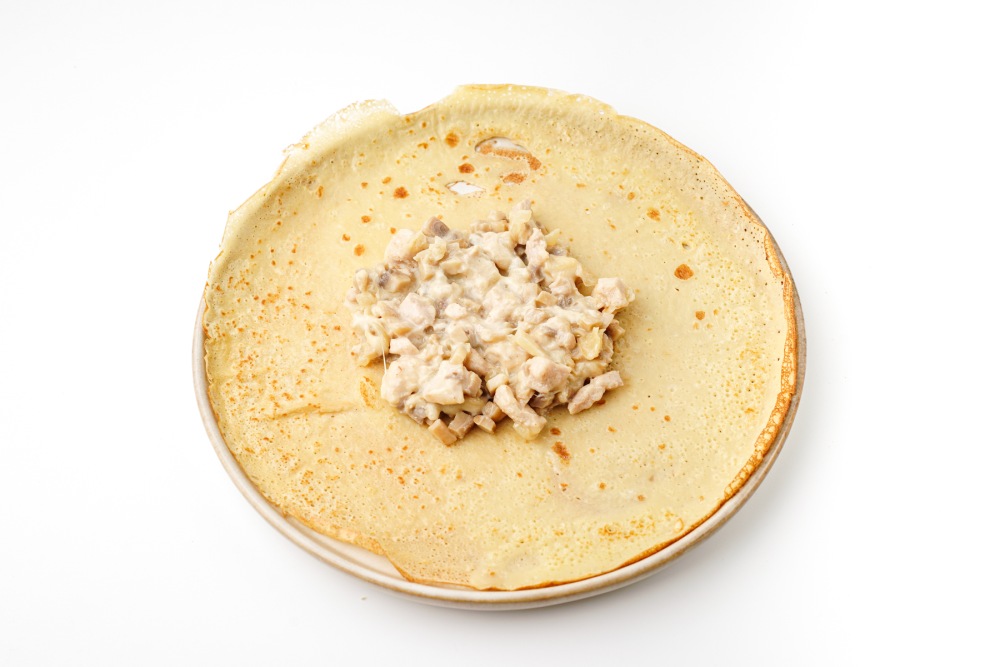 Как упростить приготовление блинов с курицей, грибами и сыром: