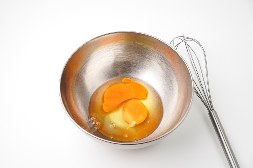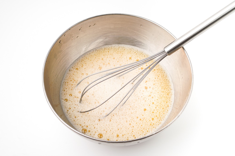 Разбить яйца аккуратно, чтобы в миску не попали кусочки скорлупы. Перемешать венчиком до однородности, не взбивать активно, масса должна просто соединиться. Добавить соль и соду, снова перемешать, чтобы все равномерно распределилось.