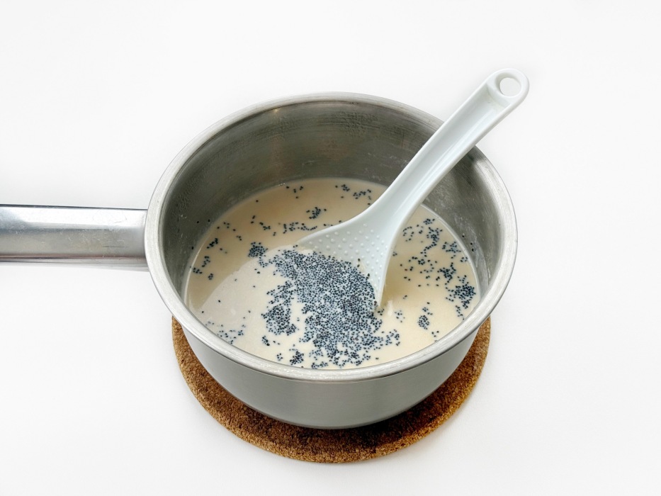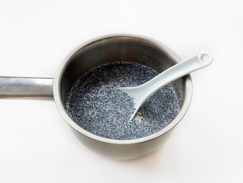 Массу довести до кипения, помешивая. Убавить огонь и варить 20-25 минут, пока мак не станет мягким.