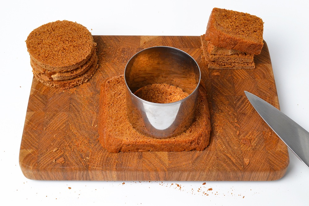 Хлеб нарезать ломтиками или с помощью формы кружочками.