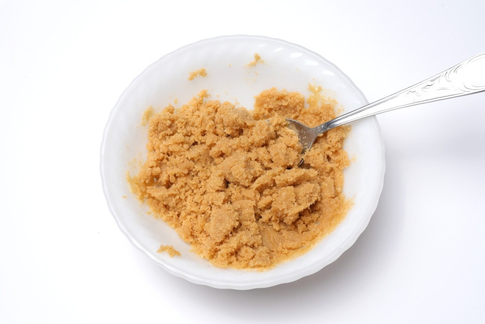 Должна получиться масса, похожая на мокрый песок. Тщательно перемешайте все, чтобы не оставалось сухого печенья.