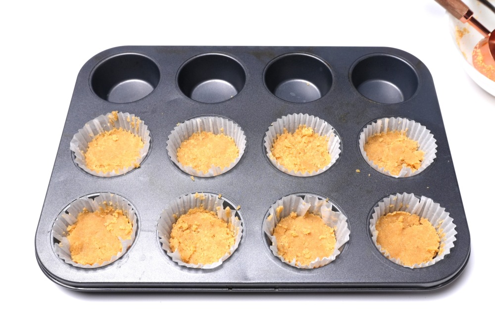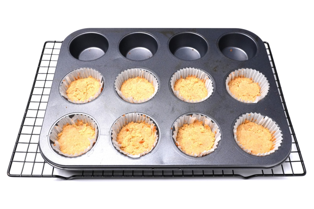 Печенье выложить в формы на 1/3, утрамбовать. Выпекать 5 минут при 160 градусах.