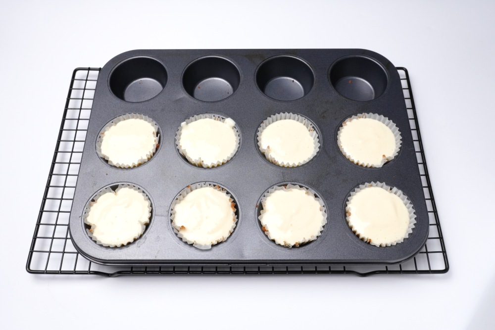 – Для сырной массы яйца, сметана и сыр должны быть комнатной температуры, в таком виде они равномерно распределятся, и чизкейки получатся однородными.