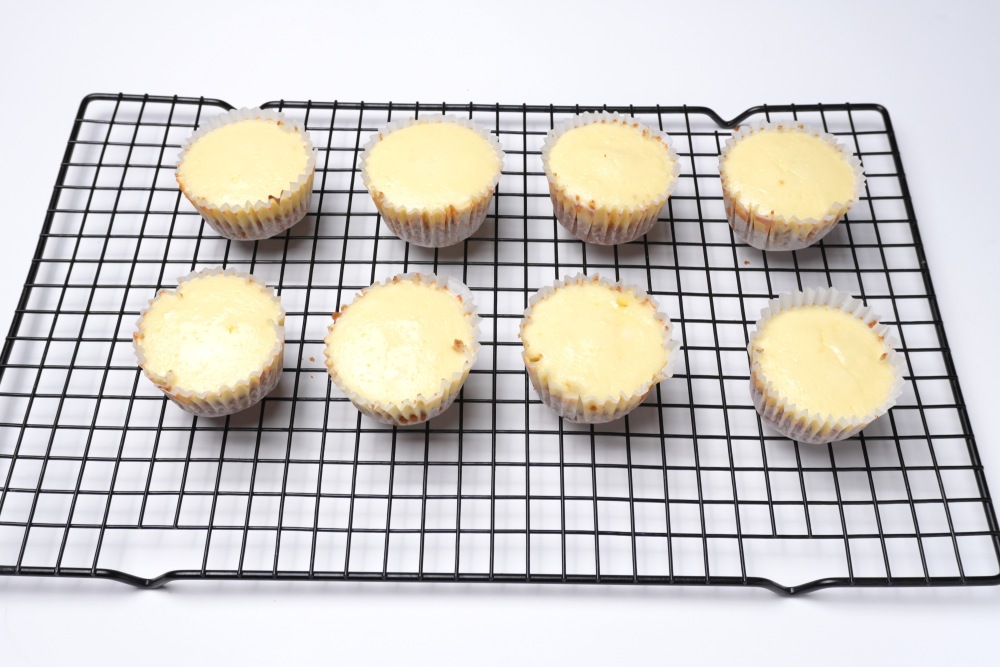 Готовые чизкейки полностью остудить. Сначала остудить в форме, чтобы не повредить чизкейки, а после аккуратно достать и выложить на решетку или плоскую поверхность.