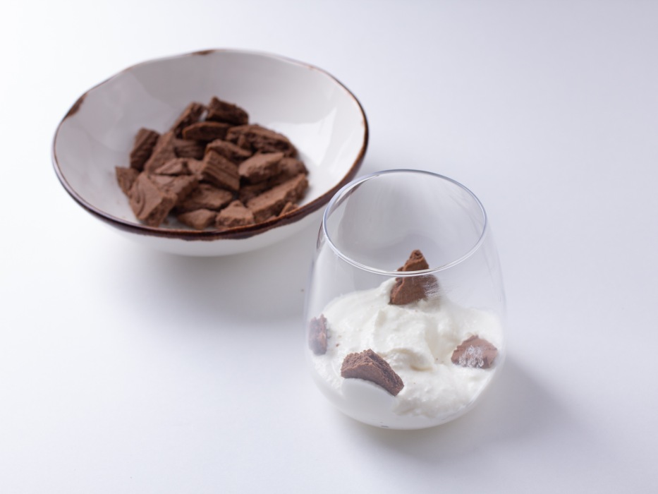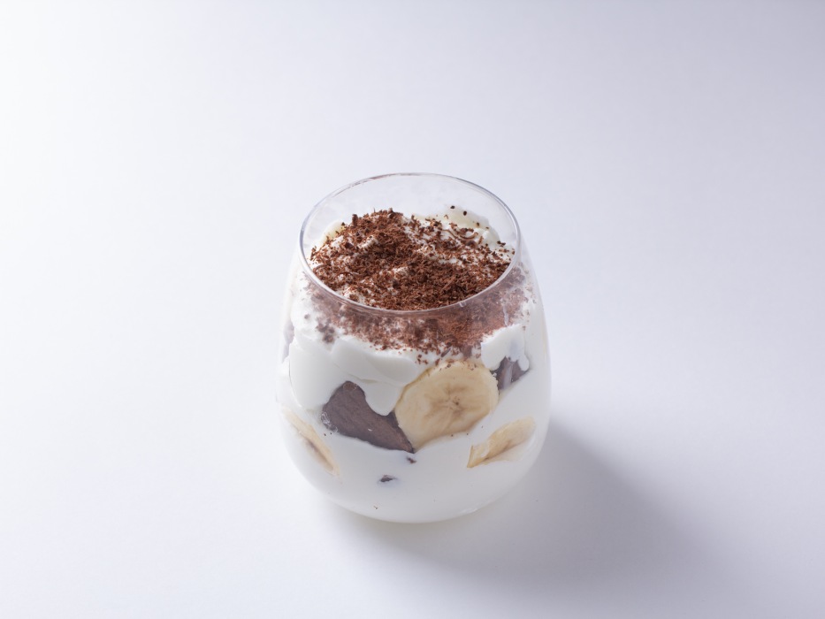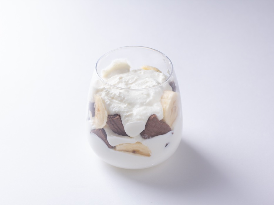 Нежная основа из творога, взбитая со сметаной и сгущённым молоком, тает во рту, словно снежинка. А контраст ей создают кусочки хрустящего шоколадного печенья. И завершающий штрих - сладкие кружочки банана.