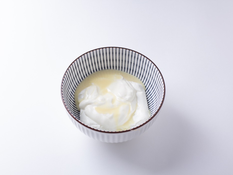 – использовать погружной блендер, чтобы взбить творог со сметаной и сгущёнкой до абсолютно гладкой текстуры