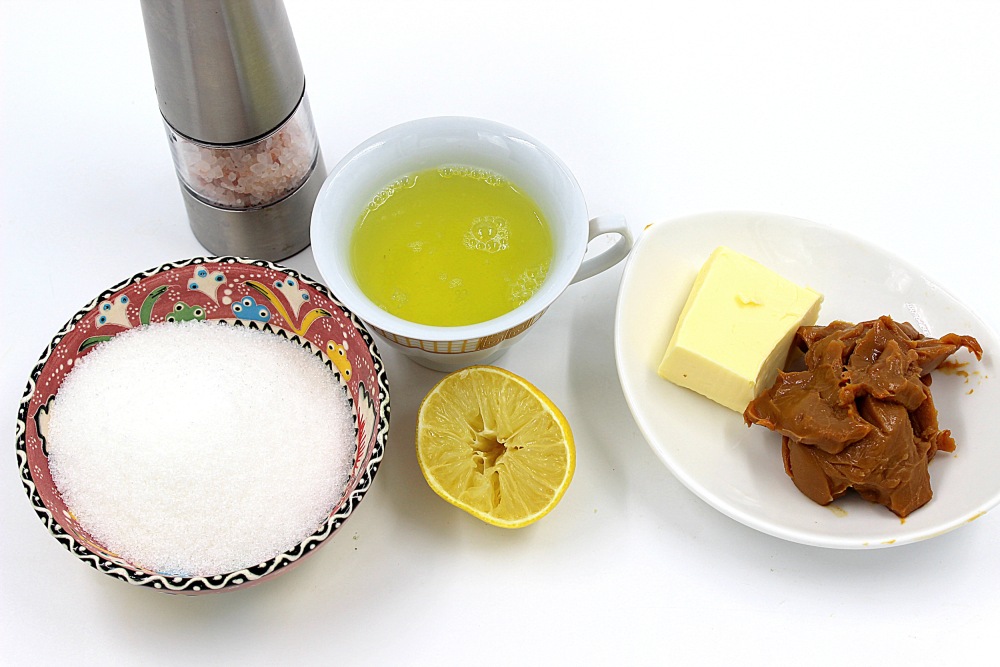 Подготовить все ингредиенты для домашнего безе с вареной сгущенкой. Сок лимона можно заменить маленько щепоткой лимонной кислоты. Сливочное масло комнатной температуры.