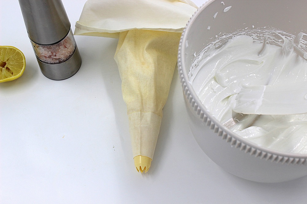 -Если вы готовите безе с кремом на несколько дней, то лучше и крем, и безе хранить отдельно, а уже перед подачей быстро отсадить и сформировать (работы на 1-2 минуты).