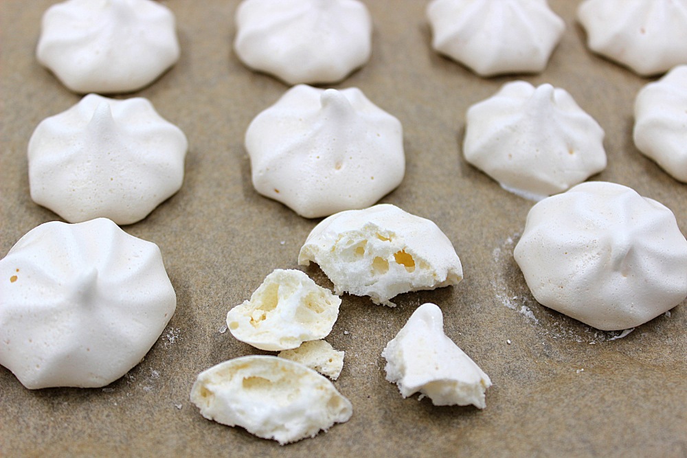 Безе должны быть полностью сухими, ломаться и крошиться.