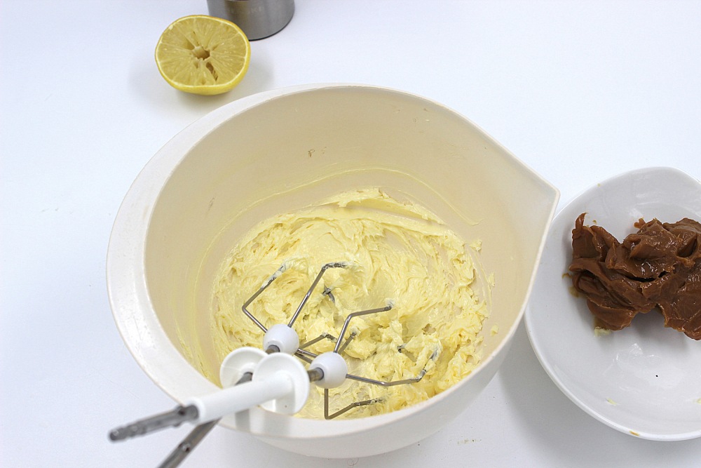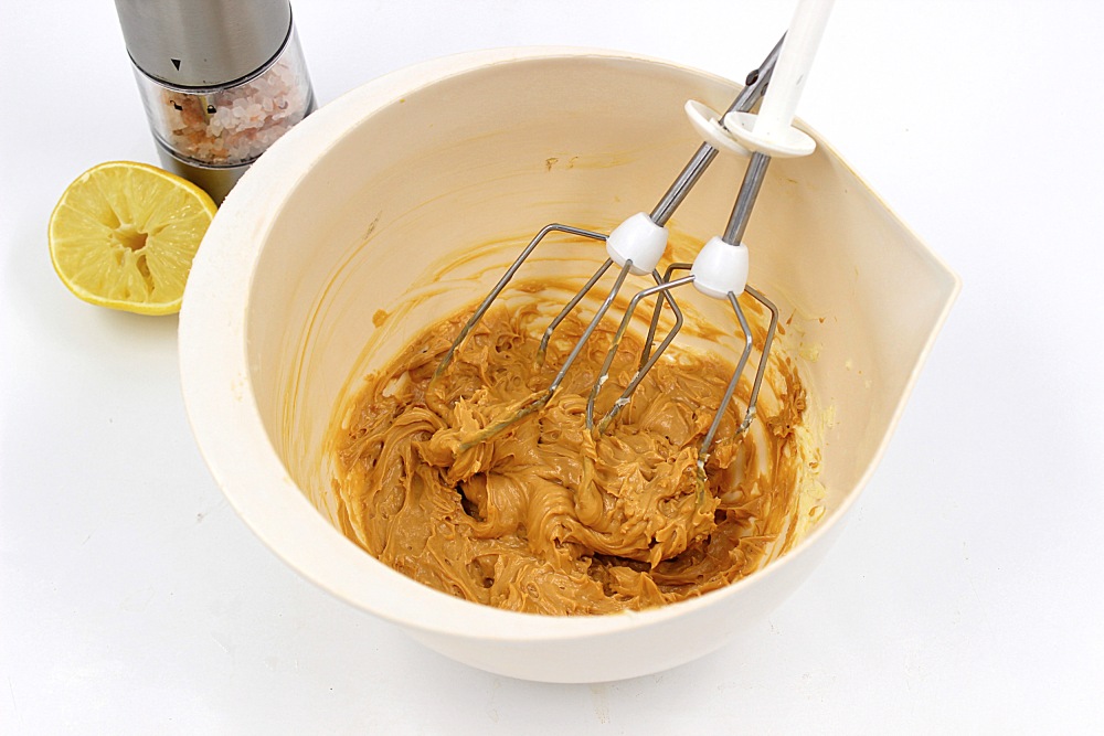 В небольшой, глубокой миске взбить несколько минут сливочное масло.
