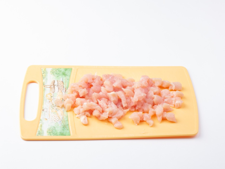 Куриную грудку мелко нарезать.