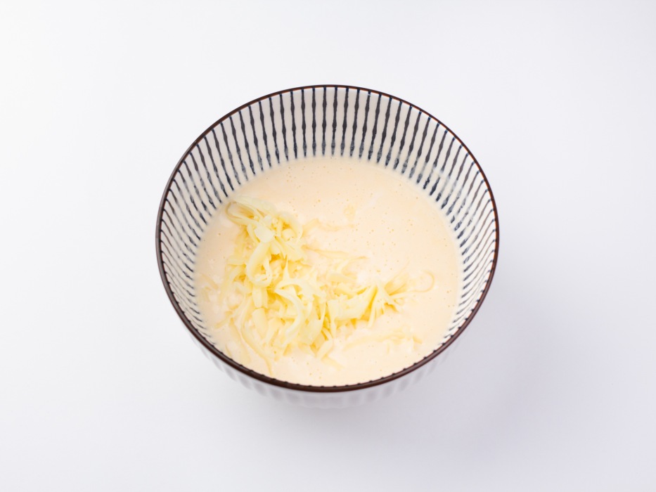 Добавить в миску натертый сыр.