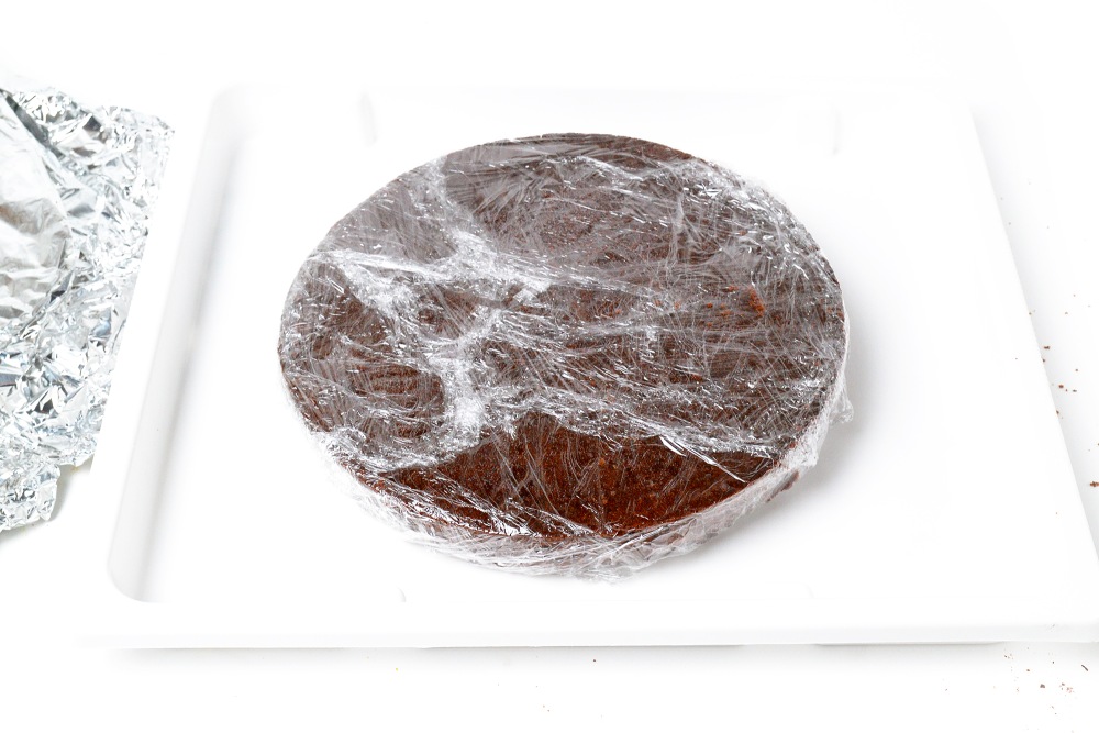Завернуть оба бисквита в пищевую пленку и убрать в холодильник на 8-10 часов. Я оставила почти на сутки.