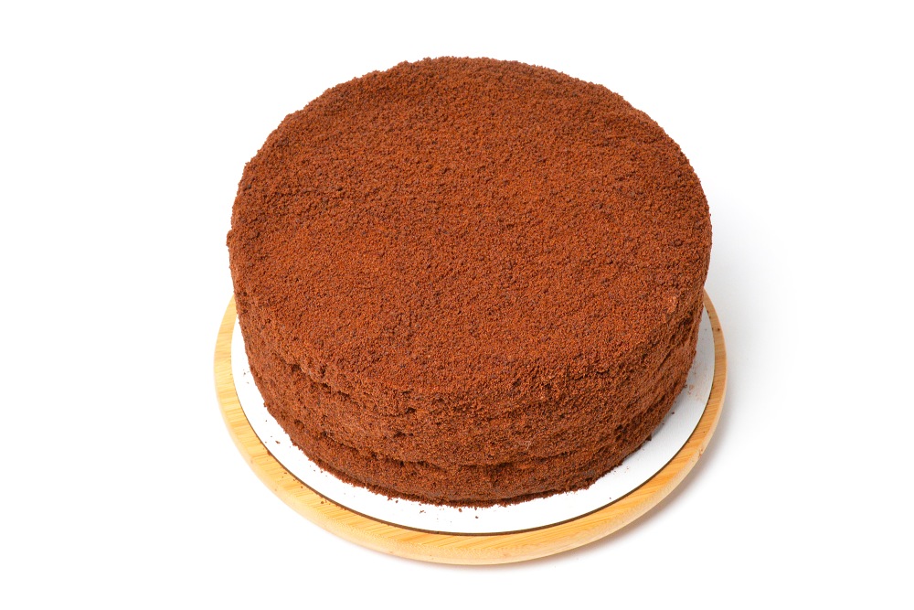 Для украшения торта можно использовать остатки других бисквитов, печенье, орехи. Я взяла шоколадный бисквит из заморозки и смешала его с остатками от нарезки коржей.