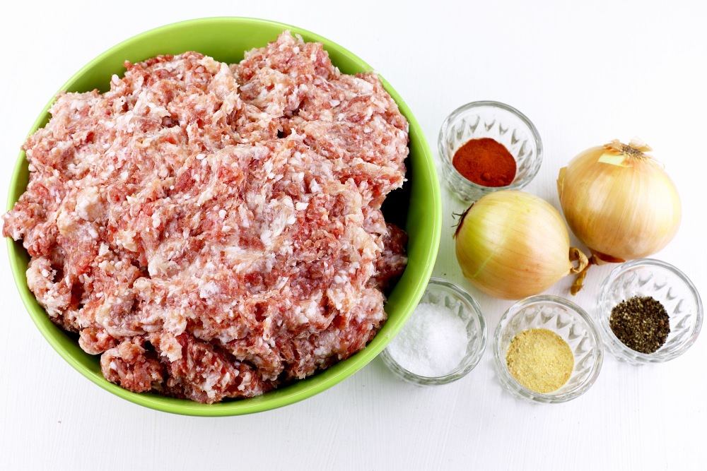 Подготовить необходимые ингредиенты для рецепта фрикаделек из фарша для заморозки.