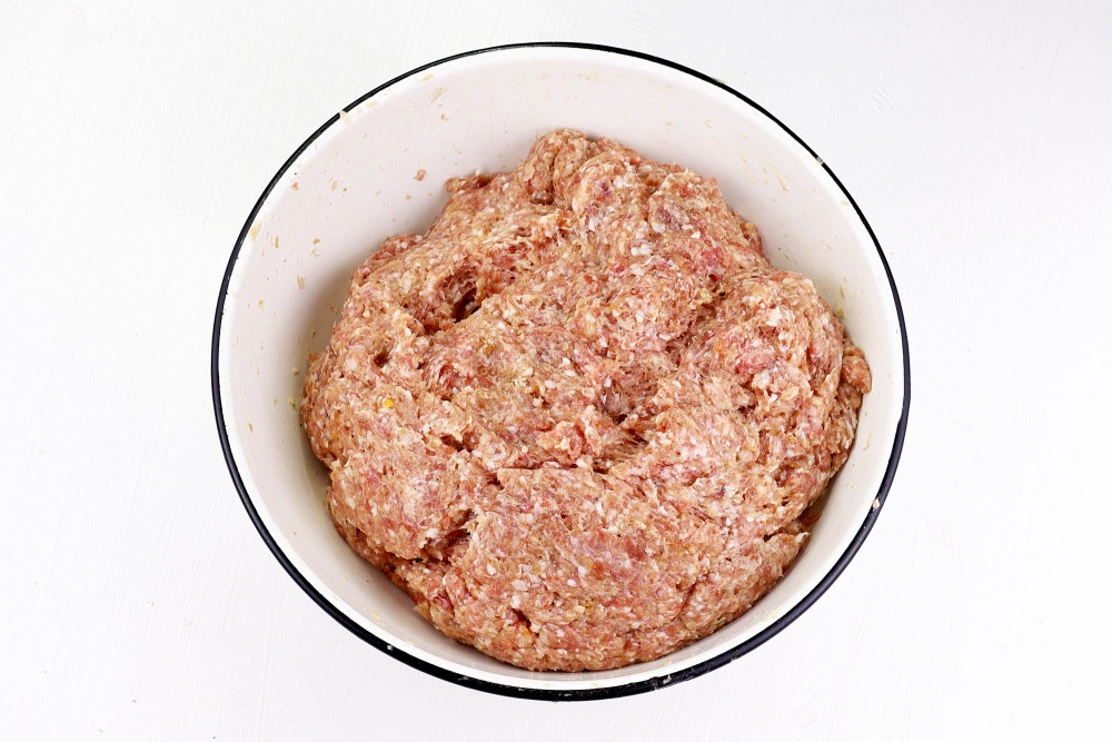 Просто взять фарш в руку и с усилием бросить его обратно в миску. Повторить этот «ритуал» несколько раз: так мясо выпускает белок, становится вязким и эластичным. В итоге фарш должен хорошо держать форму и перестать липнуть к рукам, оставаясь при этом нежным.