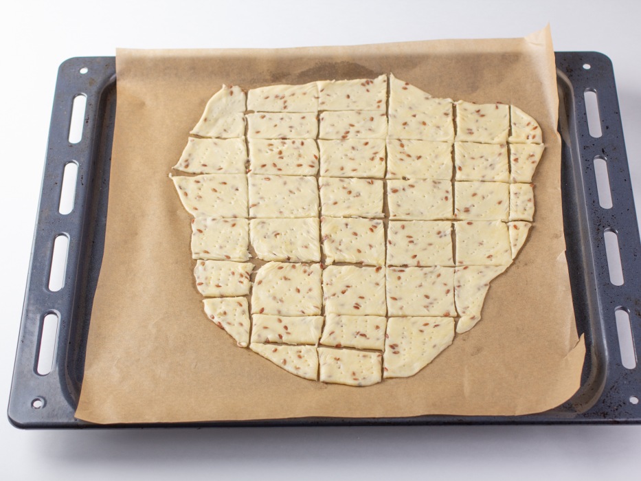 Разрезать тесто на равные прямоугольники небольшого размера.