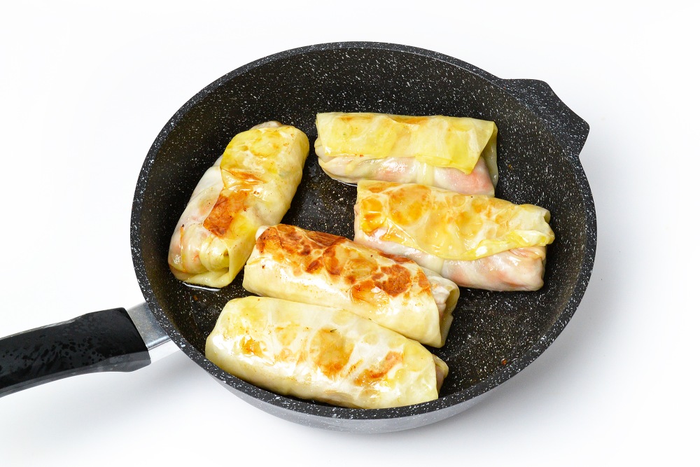 Сверху выложить обжаренные голубцы.