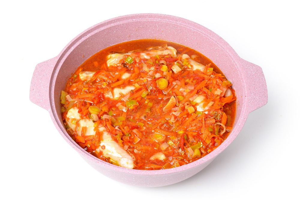 Сделать соус: остатки моркови и лука обжарить по 2-3 минуты.