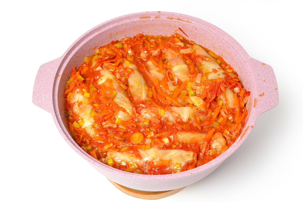 - Не ставьте голубцы вертикально. При укладывании боком старайтесь, чтобы они лежали плотно друг к другу, но оставалось место для соуса.