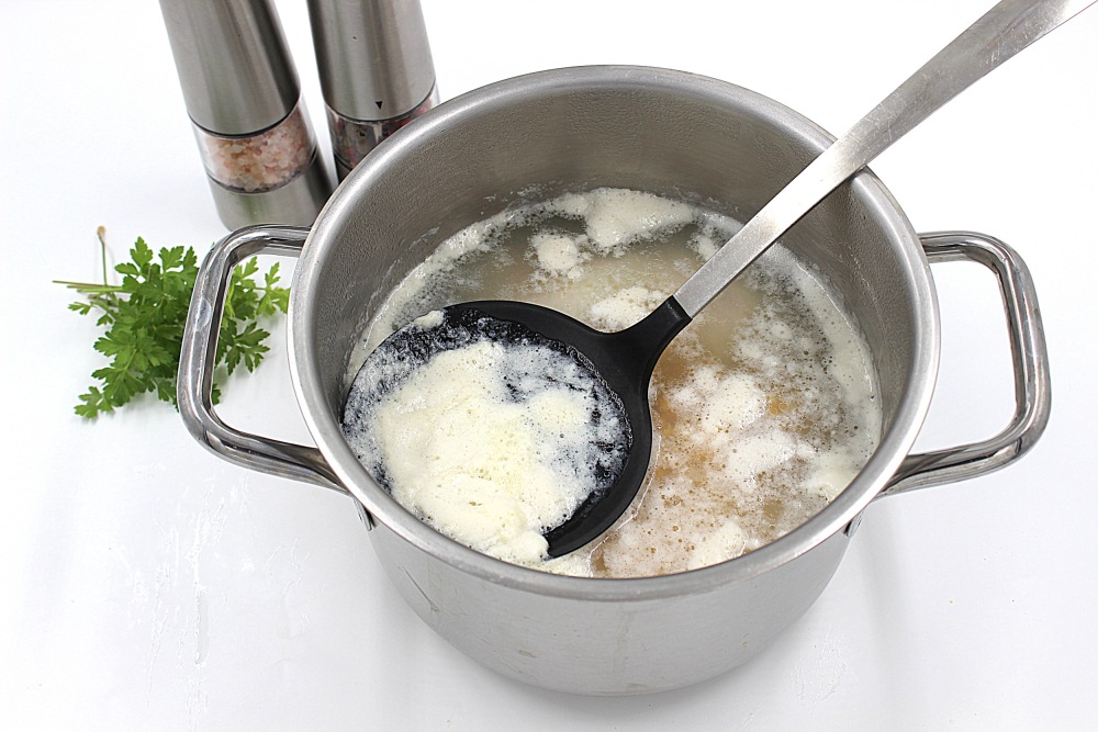 Если суп не съедается сразу, то со временем он превращается в этакую гороховую кашу. Учтите это. Либо разбавляете дополнительным бульоном, либо не обращаете на это внимание и едите уже в виде кремовой каши. Это вкусно!