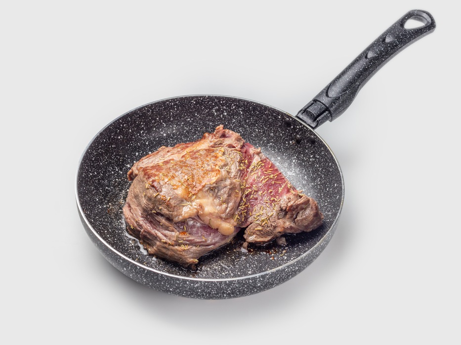 – Перед обжаркой тщательно обсушите мясо, щедро посолите и поперчите.