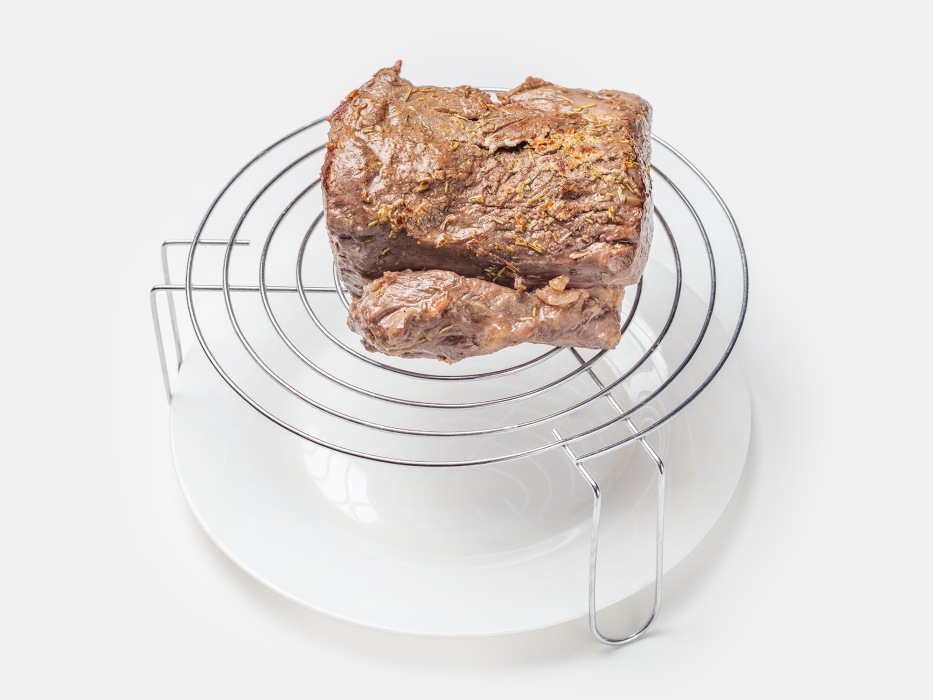 Выложить мясо на решетку, чтобы сок с мяса стекал на тарелку и остудить.