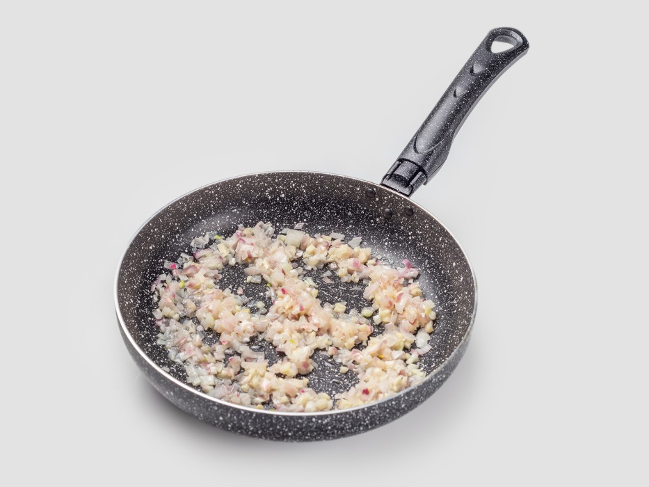Обжарить в течение 10 минут на среднем огне лук и чеснок.
