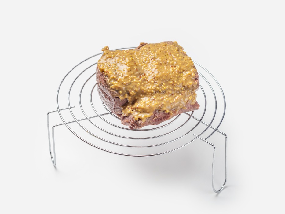– Всегда давайте мясу остыть на решетке, чтобы сок стекал вниз, а не в будущее тесто.