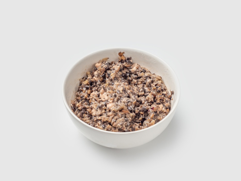 Охлажденный грибной дюксель смешать с паштетом из гусиной печени.