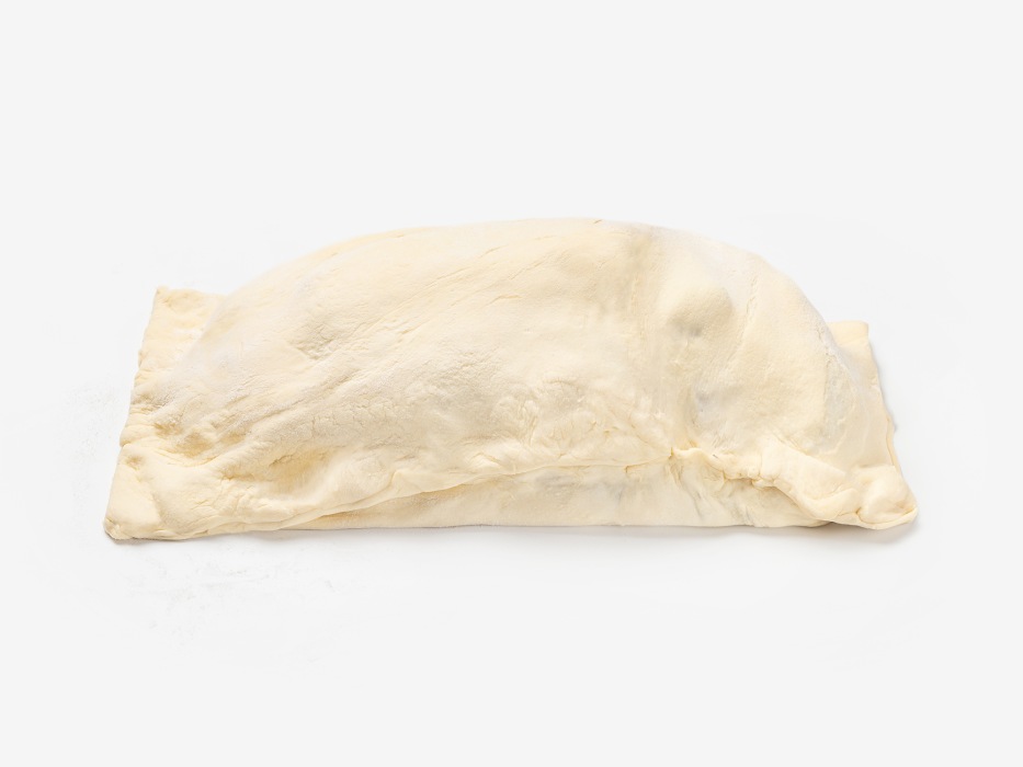 Накрыть рулет свободным краем теста и сформировать шов. Обрезать лишнее тесто с краев.