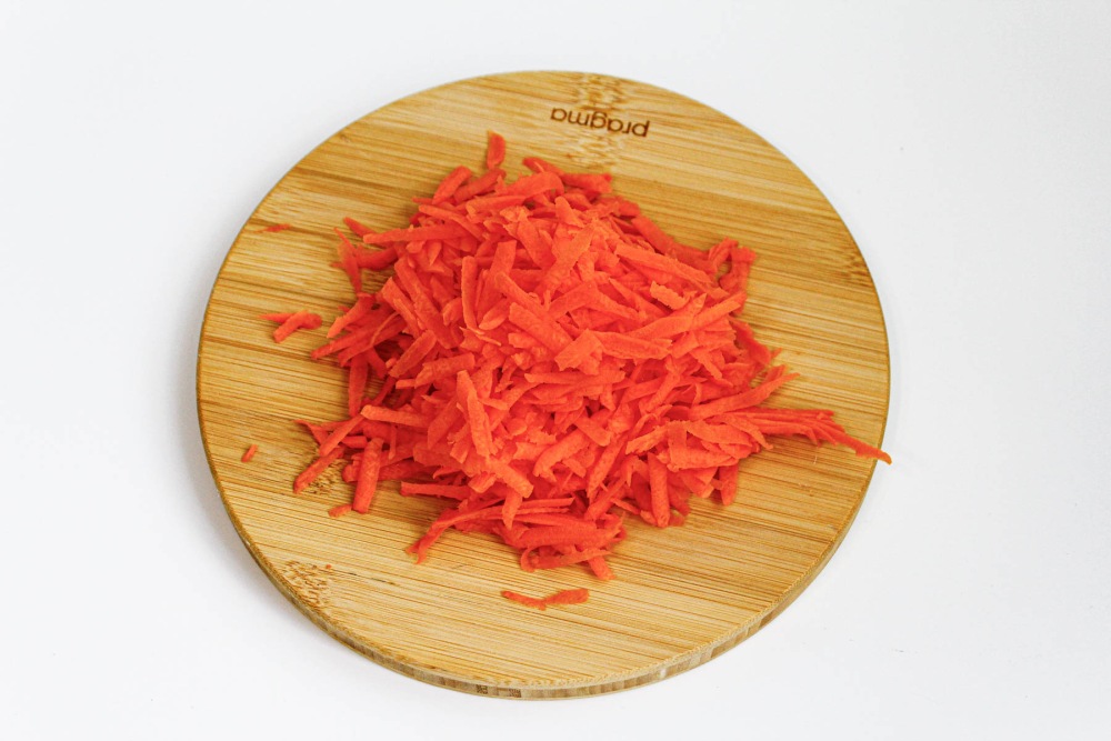 Промыть морковь под проточной водой для удаления грязи и очистить от кожуры. Натереть на крупной терке. Можно измельчить в блендере.