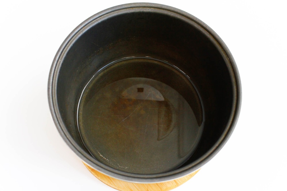 Для обжарки овощей и мяса необходимо влить растительное масло в чашу мультиварки.