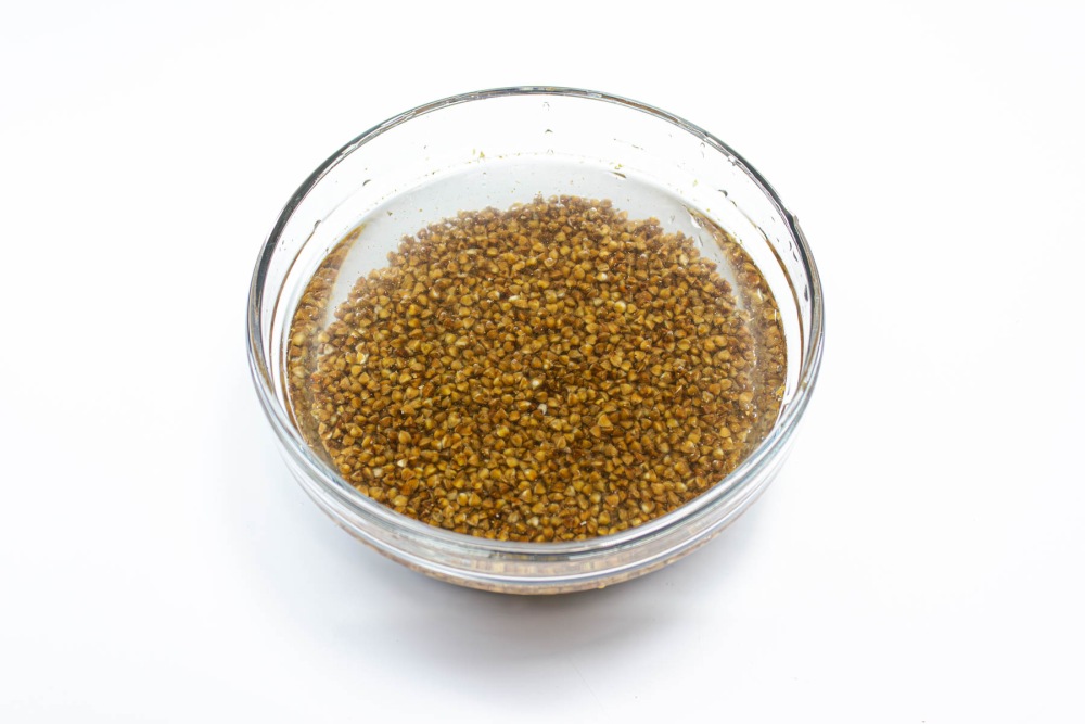 Пока мясо тушится, необходимо промыть гречневую крупу.
